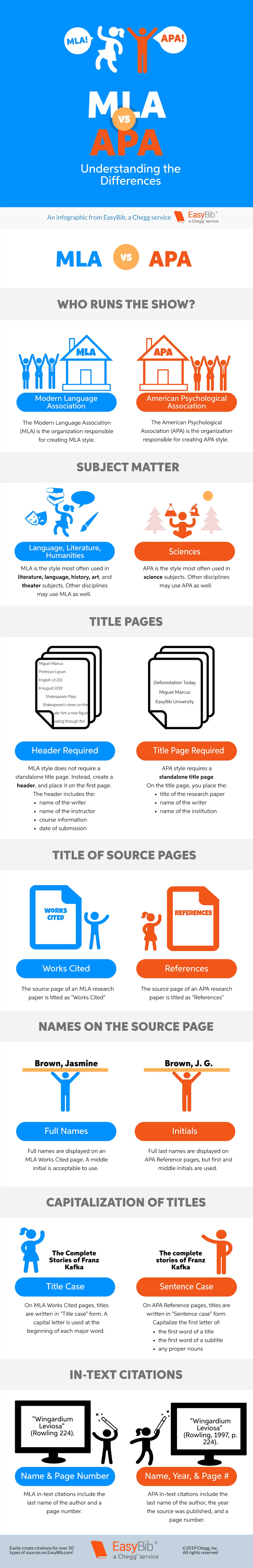 Even though there are thousands of citation styles in existence (yes, thousands!), the world generally revolves around the two most commonly used citation styles: MLA and APA. Both have been around for quite a long time and most students and researchers use one or the other to cite their sources. Even though MLA and APA are popular citation styles that are taught in thousands of schools each year, there are always tons of questions about the differences between the two. That’s why we’ve put together a handy visual infographic showing the main differences between MLA and APA.