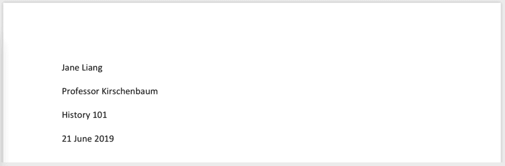 If choosing option one, creating an MLA heading, you’ll need to include four main components: