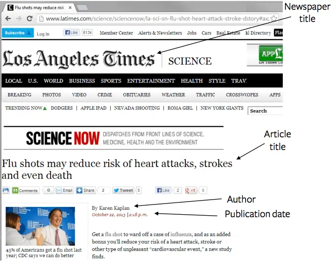 Kaplan, K. (2013, October 22). Flu shots may reduce risk of heart attacks, strokes and even death. Los Angeles Times. https://www.latimes.com |
