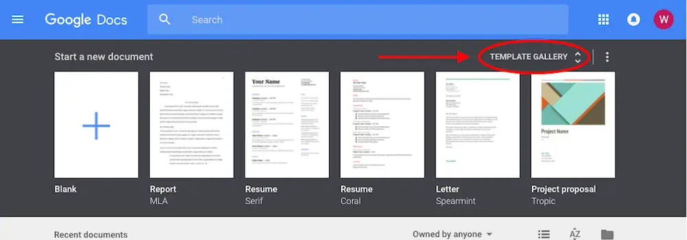 - Go to docs.google.com and click Template Gallery.